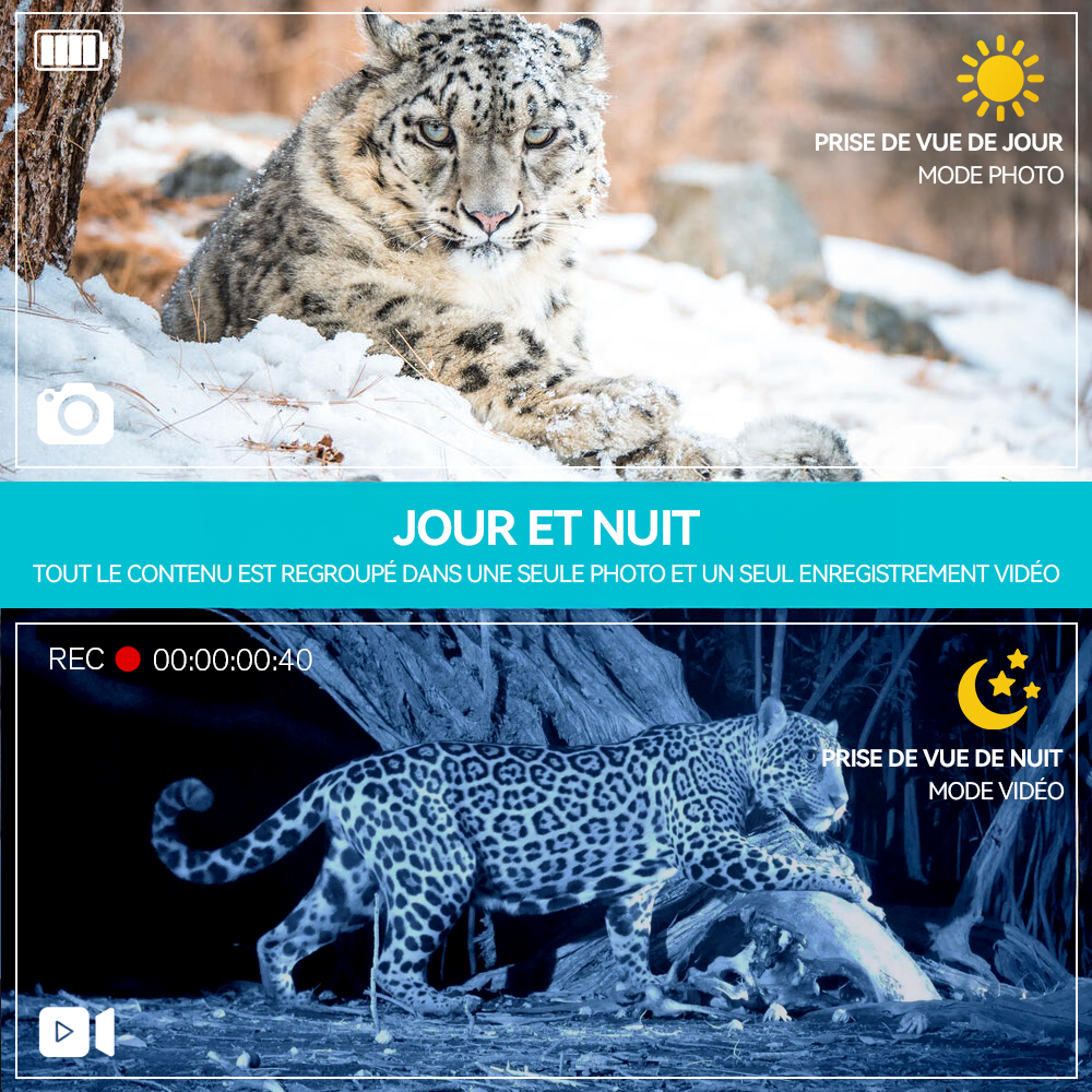 Capturez d'incroyables photos et vidéos HD de jour comme de nuit, en préservant les moments les plus captivants de vos aventures en pleine nature pour créer des souvenirs impérissables.
